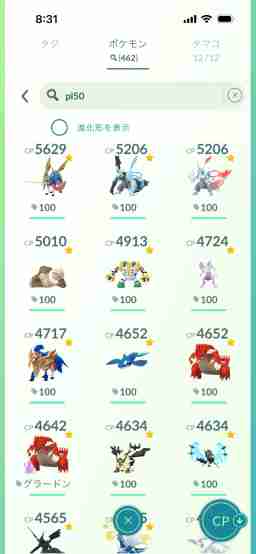 でへへ様、ご回答ありがとうございました。462体を仕上げておられます事、凄すぎです。私の 100個体値は399体ですので精進します。しゃどうは私も 10体仕上げておりますが、100と96が4体ずつで98は2体です。強烈な刺激を頂き感謝致します。