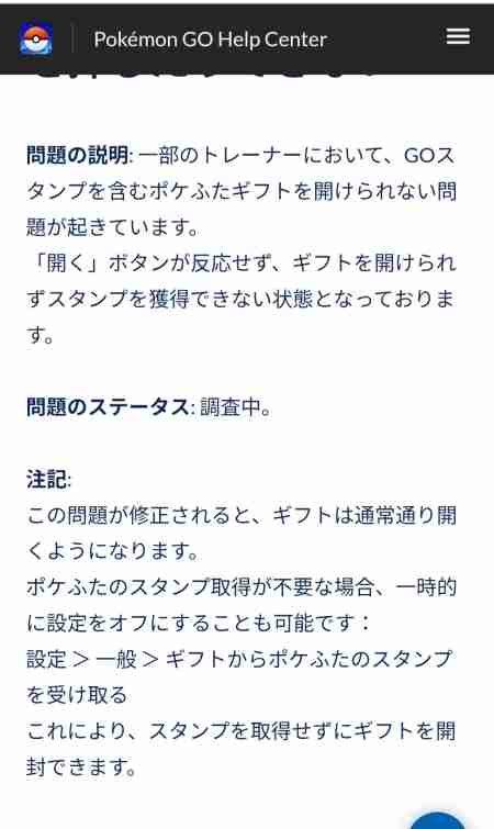 ポケモンマンホールのプレゼントを開けません(「続けてスタンプを押す」ボタンが反応しない)