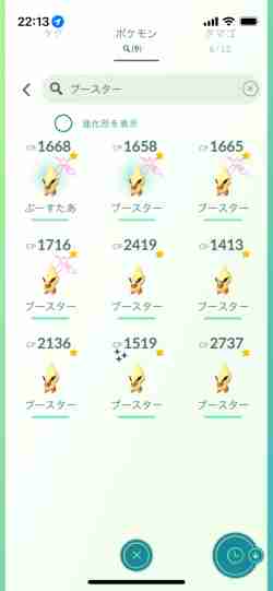 ポケモンGO ダイマックスイーブイは、ブースターにばかり進化します。名前変化は昔使ってしまいました。
